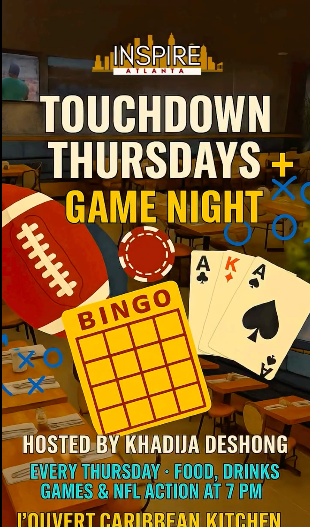 Thursday Night Football at Jouvert Caribbean Kitchen 🏈🔥 This fun new series is hosted by@khadijadeshong, with Inspire Atlanta 💫
